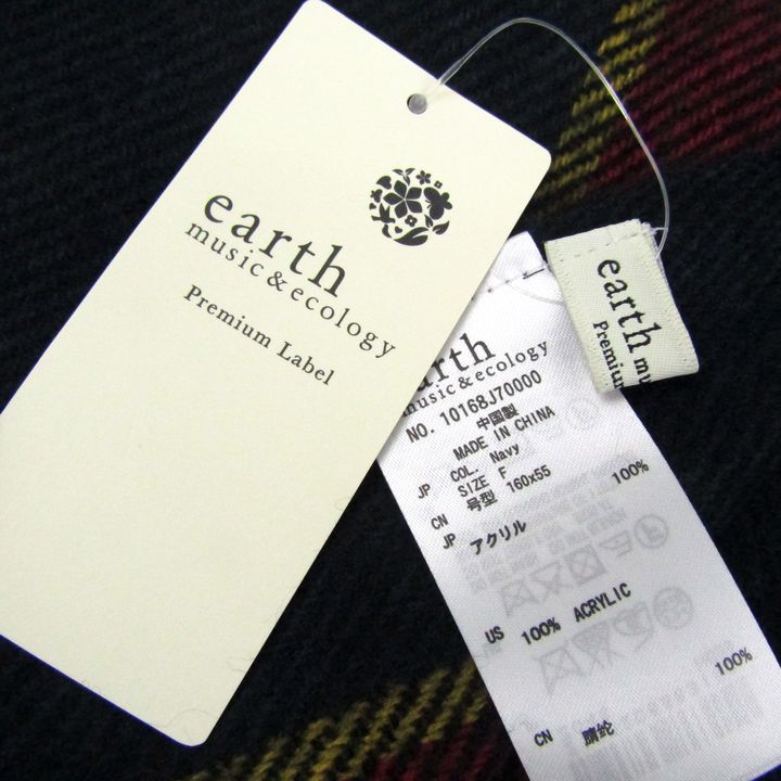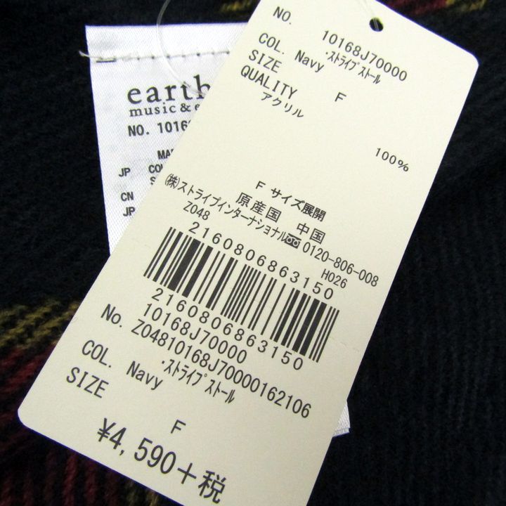アースミュージックアンドエコロジー ストール 未使用 ブランド 黒 レディース Fサイズ ブラック×ネイビー earth music&ecology 【中古】