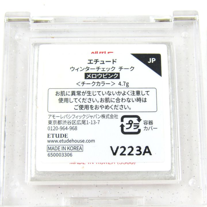 エチュード ウィンターチェック チーク メロウピンク 若干使用 コスメ レディース ETUDES 【中古】