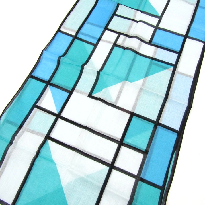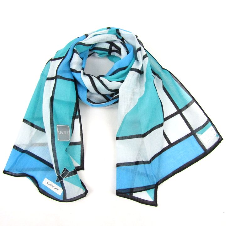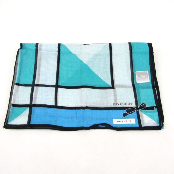 ジバンシィ スカーフ ストール 未使用 コットン 日本製 幾何学柄 ブランド レディース エメラルドグリーン/ブルー GIVENCHY 【中古】