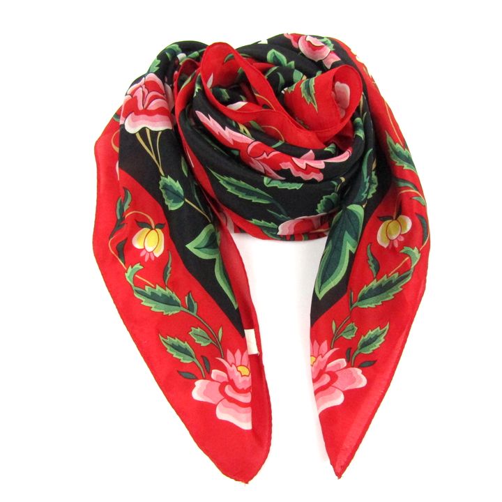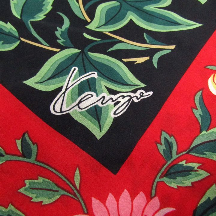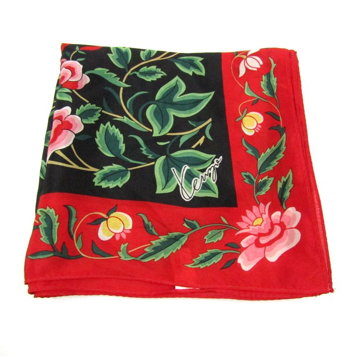 ケンゾー スカーフ 花柄 シルク C-TL2002 ブランド レディース ブラック/レッド KENZO 【中古】