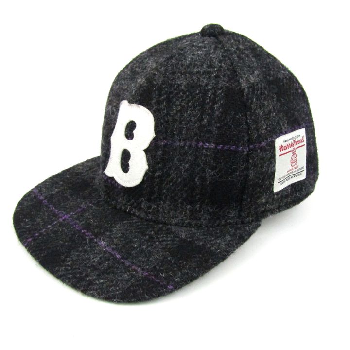 ハリスツイード BASE CONTROL キャップ ウール 帽子 ブランド メンズ Fサイズ ブラック HARRIS TWEED 【中古】