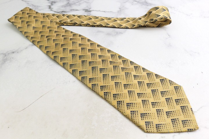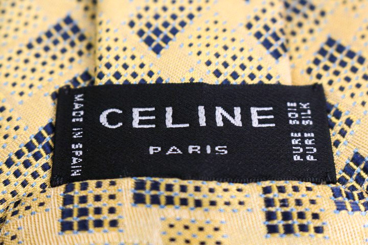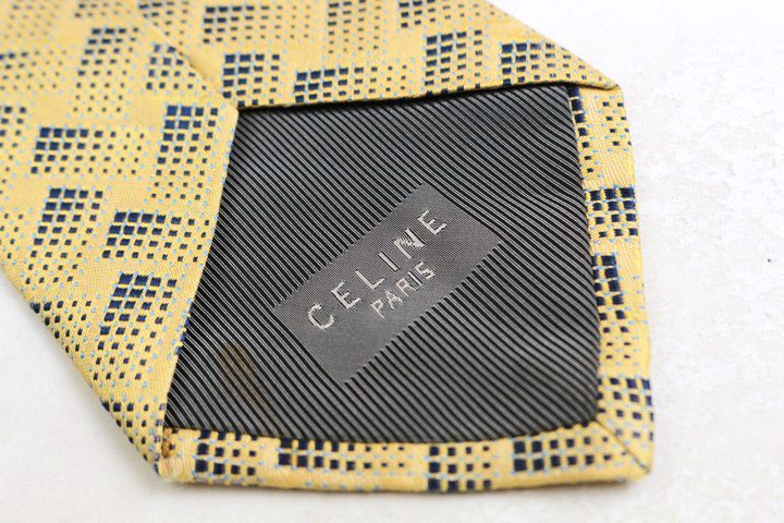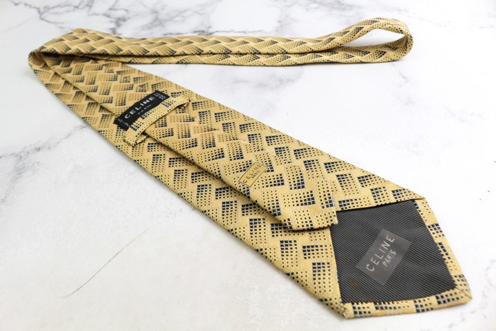 セリーヌ ブランド ネクタイ シルク 小紋柄 格子柄 PO メンズ イエロー CELINE 【中古】