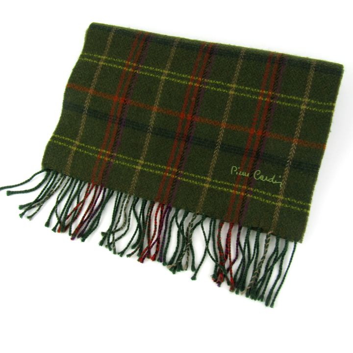 ピエールカルダン マフラー ウール カシミヤ混 チェック柄 ブランド メンズ レディース グリーン Pierre Cardin 【中古】