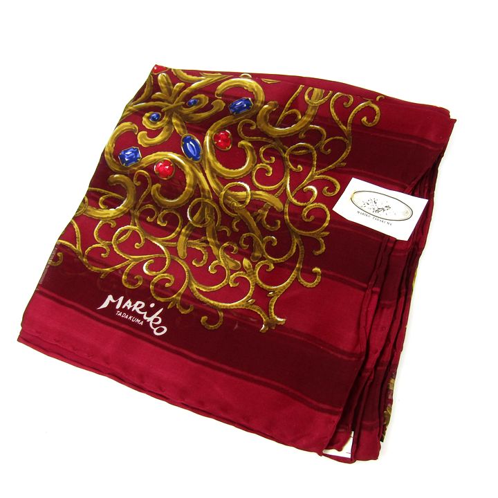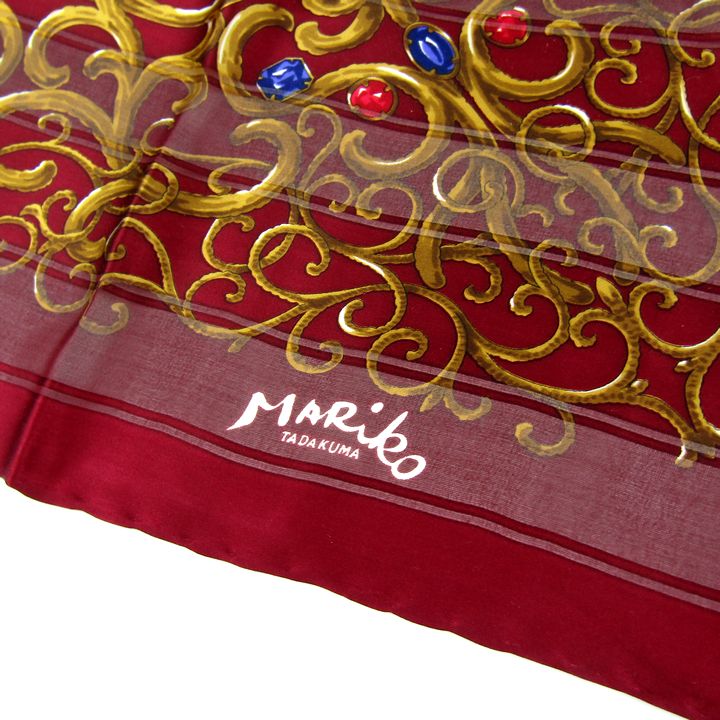 マリコタダクマ スカーフ 未使用 シルク チェーン柄 ブランド レディース ボルドー MARIKO TADAKUMA 【中古】