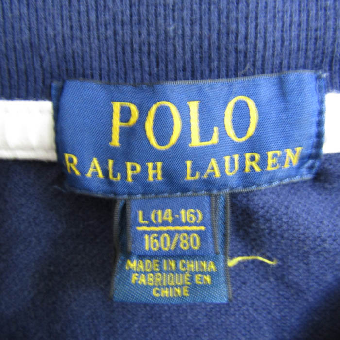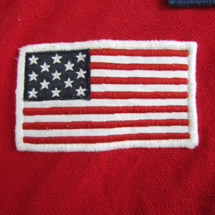 ポロラルフローレン ポロシャツ トップス半袖ビッグポニーロゴ アメリカ国旗 キッズ 男の子用 L(14-16)160/80サイズ 赤×紺 POLO RALPH LAUREN 【中古】