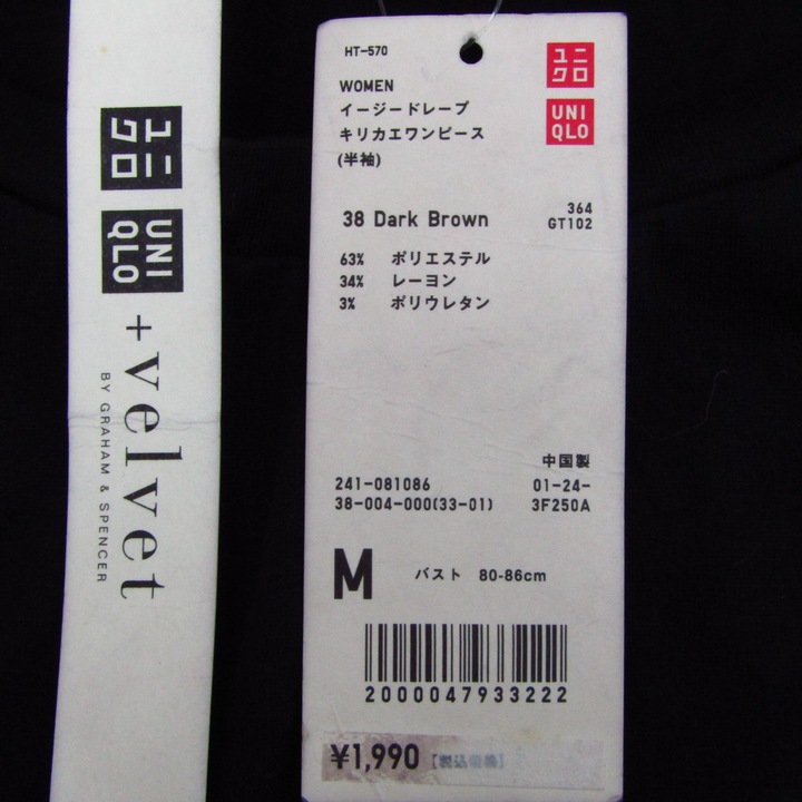 ユニクロ イージードレープ切替ワンピース トップス +velvet 未使用品 レディース Mサイズ ダークブラ...