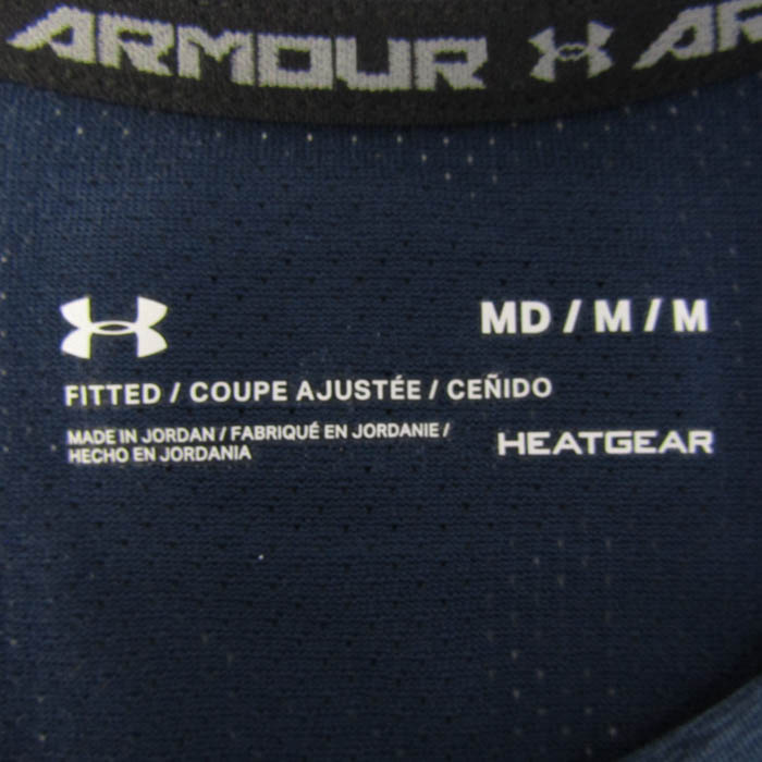 アンダーアーマー 半袖Tシャツ ストレッチ ヒートギア スポーツウエア トップス メンズ MDサイズ ネイビー UNDER ARMOUR 【中古】