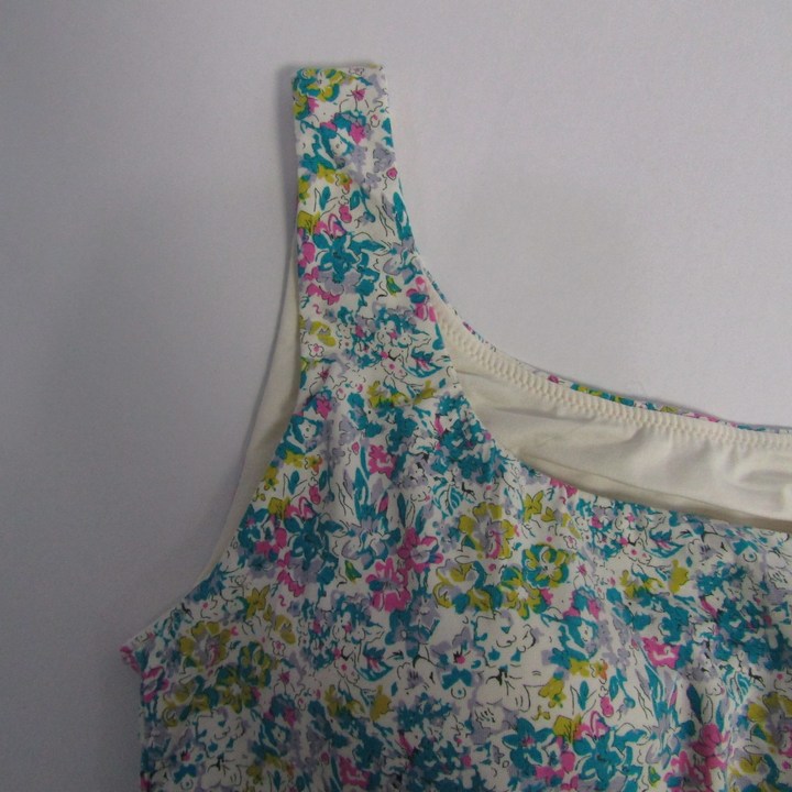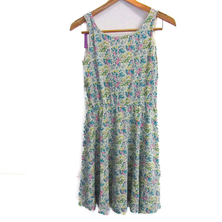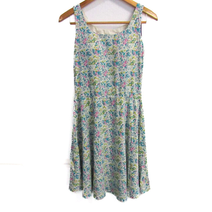 ユニクロ フレアブラワンピース ノースリーブ 未使用 花柄 ストレッチ トップス レディース Lサイズ ブルー×ピンク UNIQLO 【中古】
