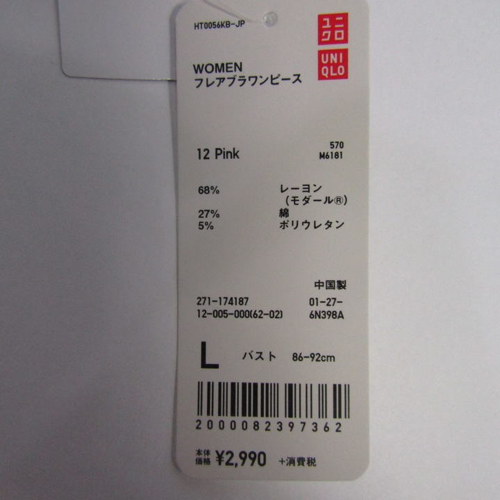 ユニクロ フレアブラワンピース ノースリーブ 未使用 花柄 ストレッチ トップス レディース Lサイズ ブ...