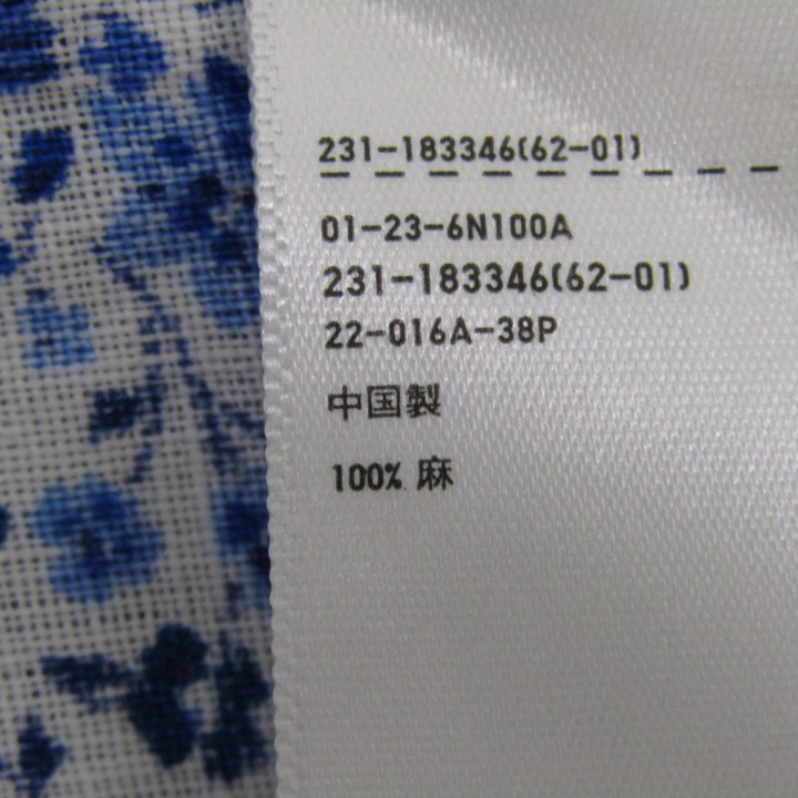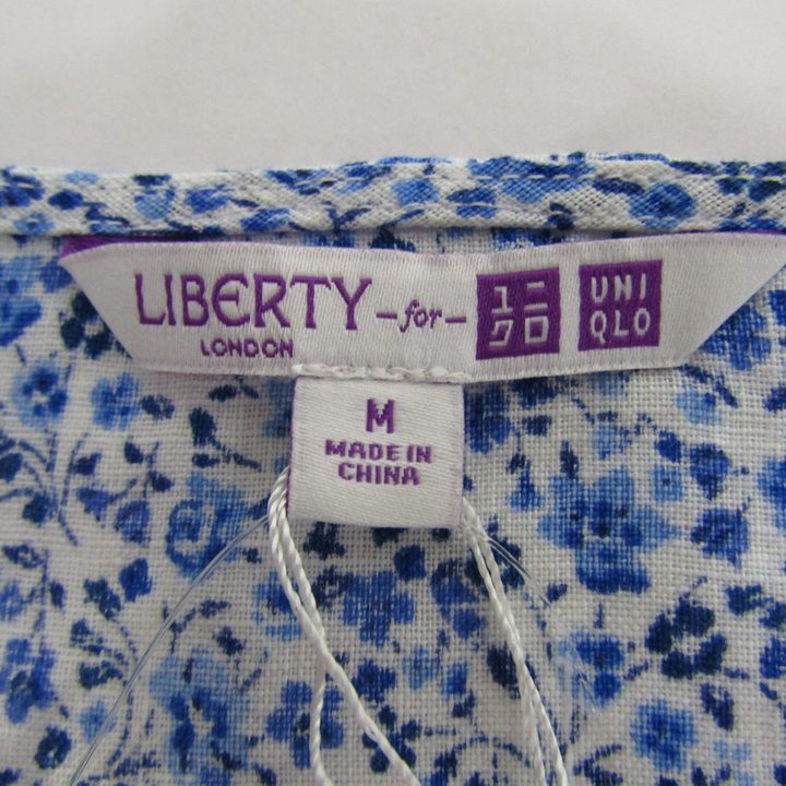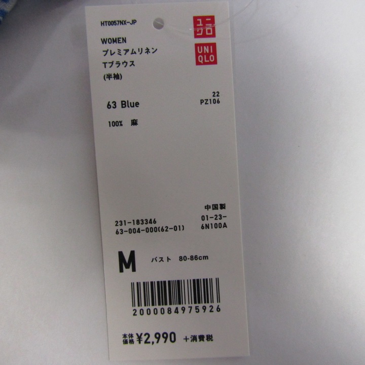ユニクロ プレミアムリネンブラウス シャツ 半袖 未使用 リネン100% トップス 白 レディース Mサイズ ホワイト×ブルー UNIQLO 【中古】
