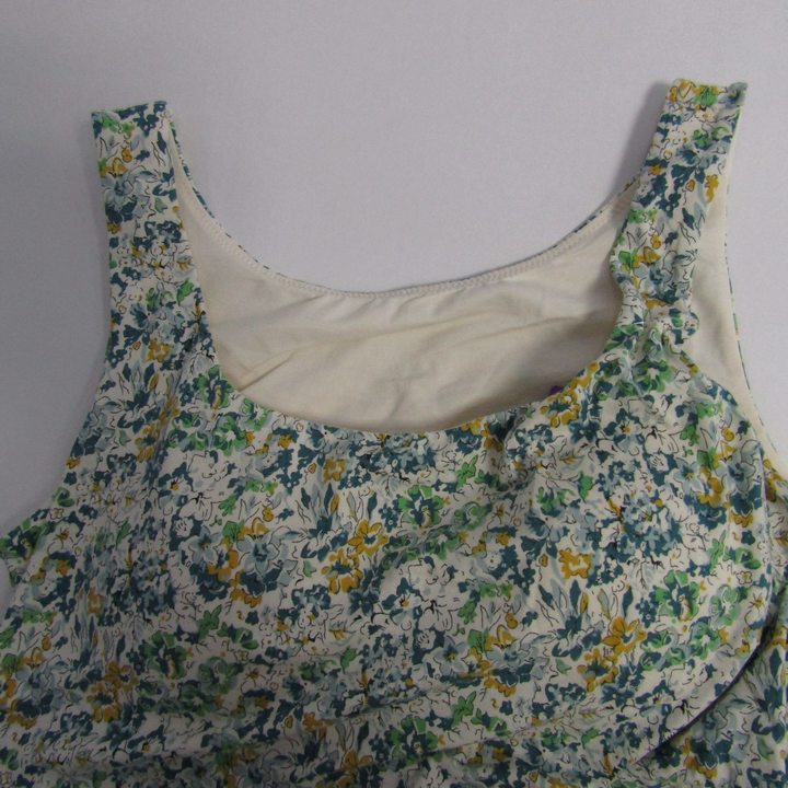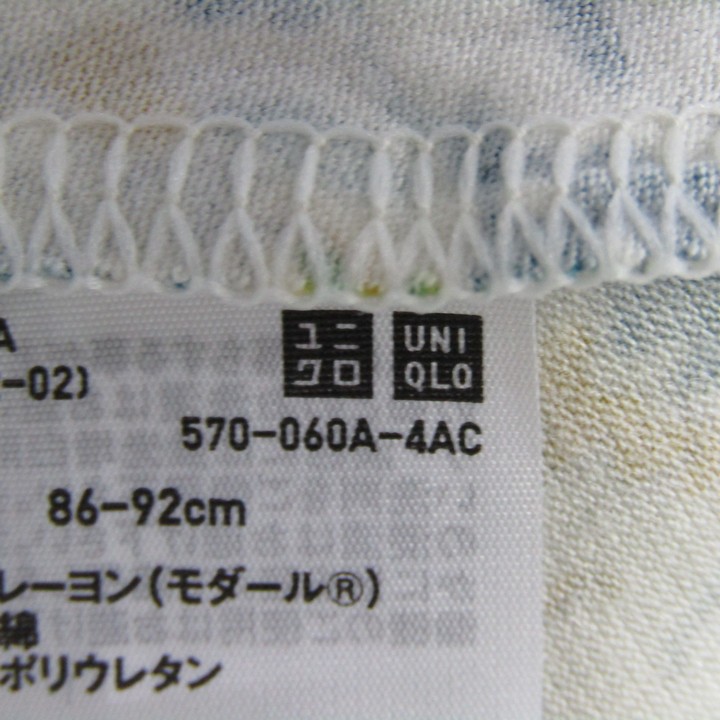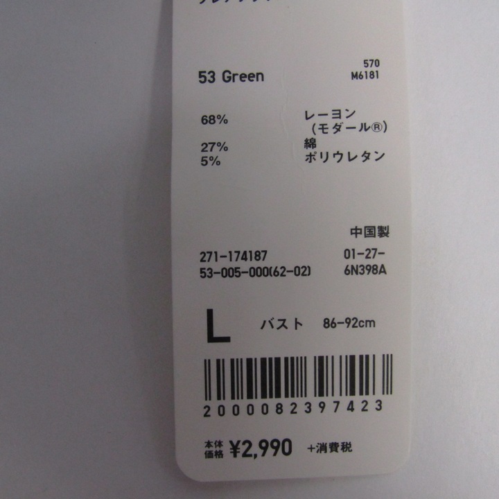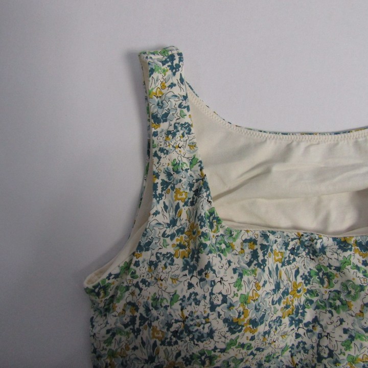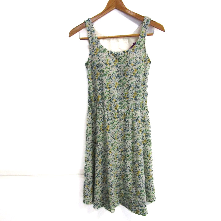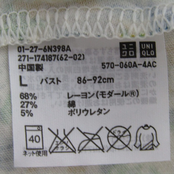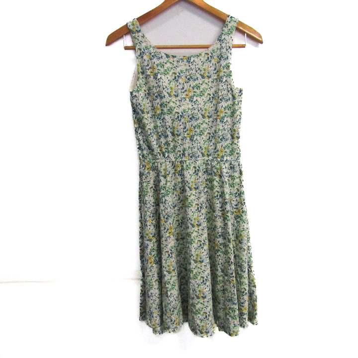 ユニクロ フレアブラワンピース 未使用 ノースリーブ 花柄 ストレッチ トップス レディース Lサイズ ホワイト×グリーン UNIQLO 【中古】