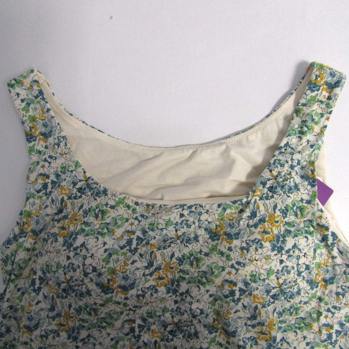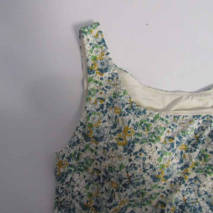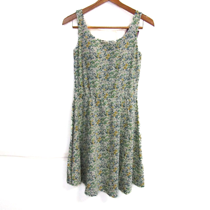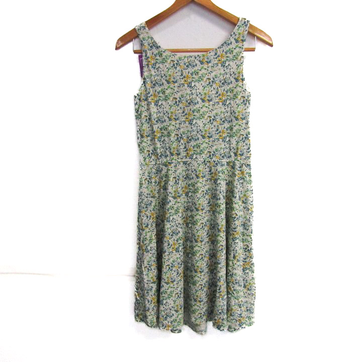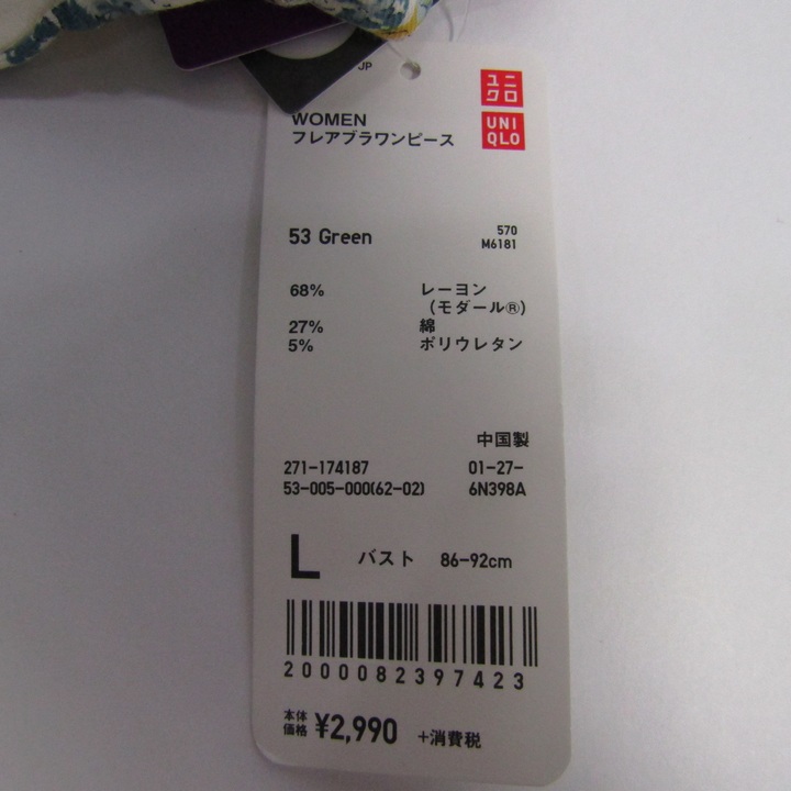 ユニクロ フレアブラワンピース ノースリーブ 未使用 花柄 ストレッチ トップス レディース Lサイズ ホワイト×グリーン UNIQLO 【中古】