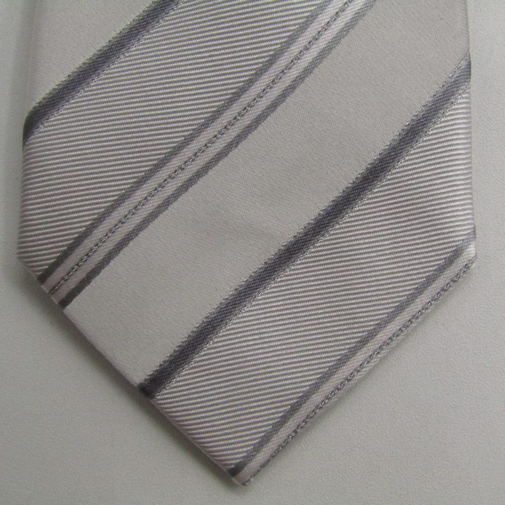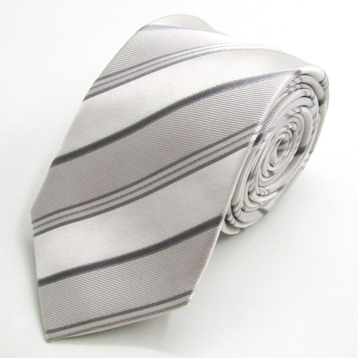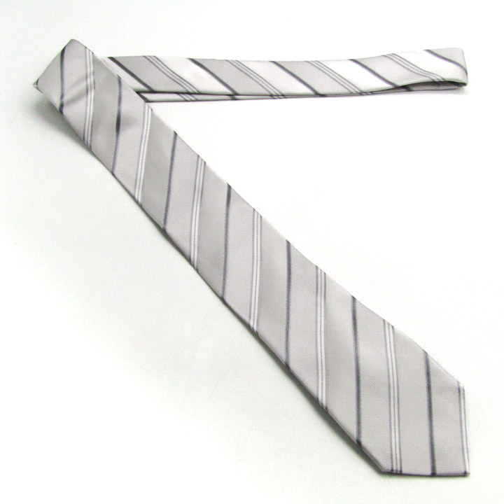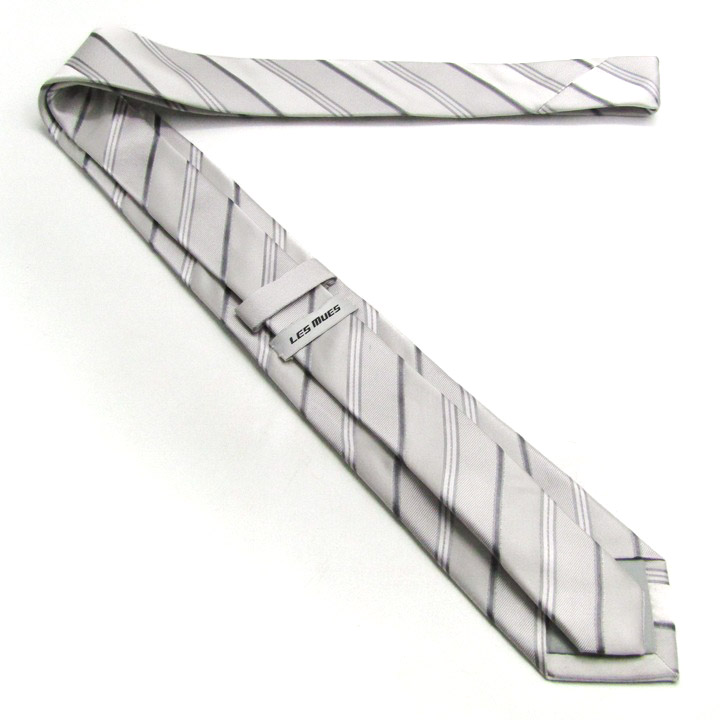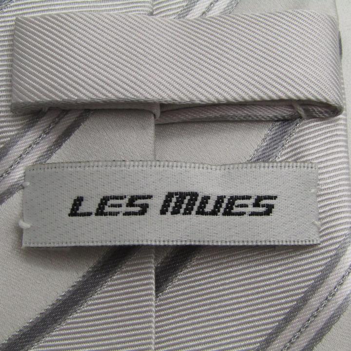 レミュー ブランド ネクタイ ストライプ柄 シルク PO メンズ ライトグレー LES MUES 【中古】