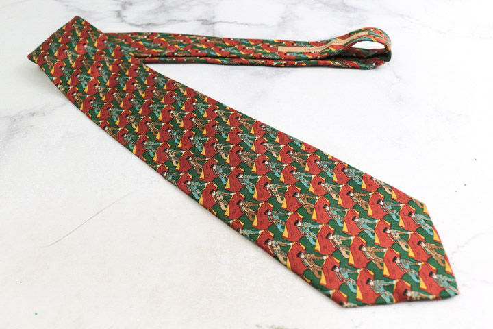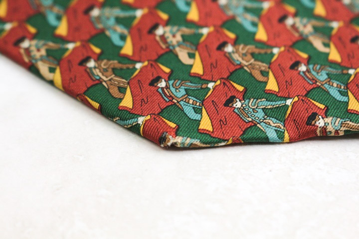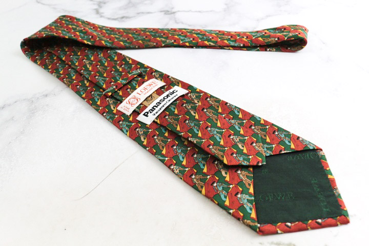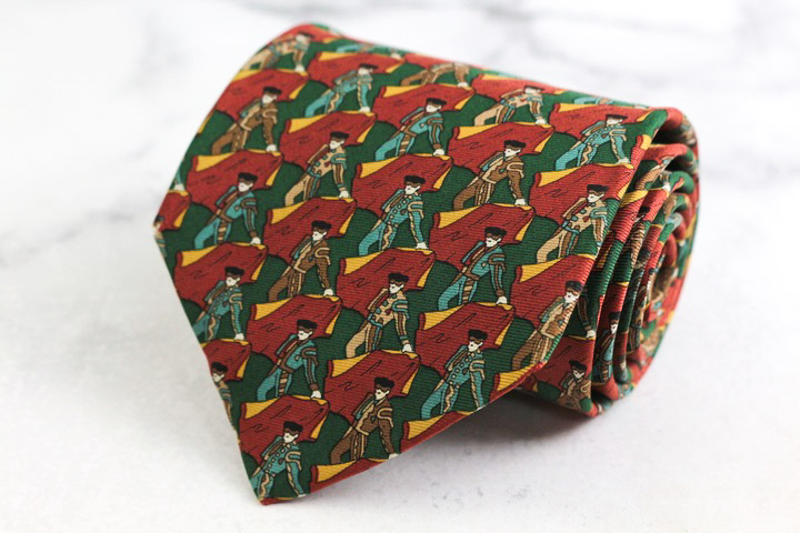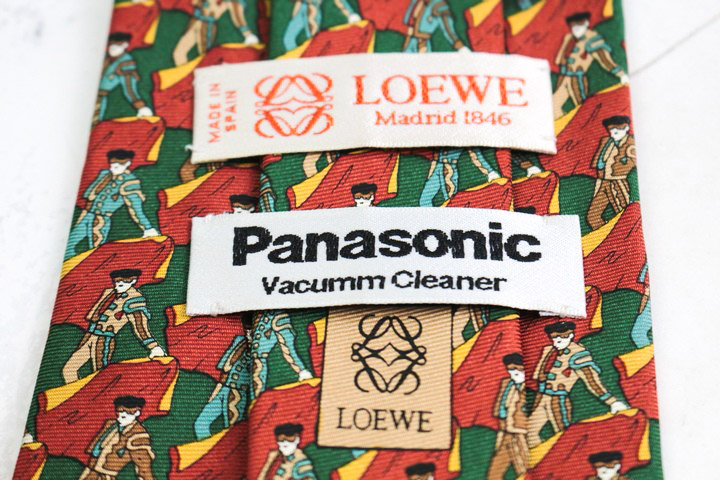 ロエベ ブランド ネクタイ シルク パナソニック 総柄 闘牛士 高級 PO メンズ グリーン LOEWE 【中古】