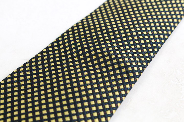 ファソナブル ブランド ネクタイ シルク 小紋柄 格子柄 総柄 ハンドメイド PO メンズ ネイビー faconnable フランス高級紳士服 【中古】