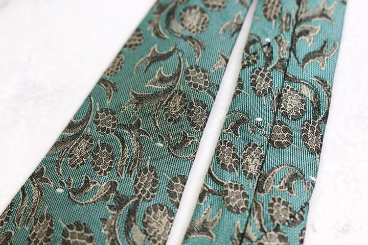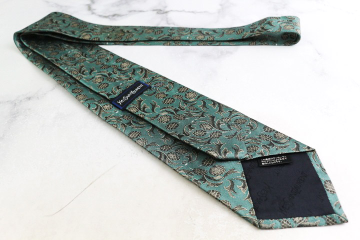 イヴ・サンローラン ブランド ネクタイ シルク ボタニカル柄 アラベスク YSL 高級 PO メンズ グリーン YVES SAINT LAURENT 【中古】