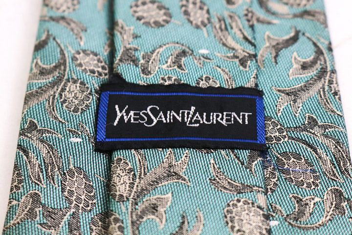 イヴ・サンローラン ブランド ネクタイ シルク ボタニカル柄 アラベスク YSL 高級 PO メンズ グリーン Y...