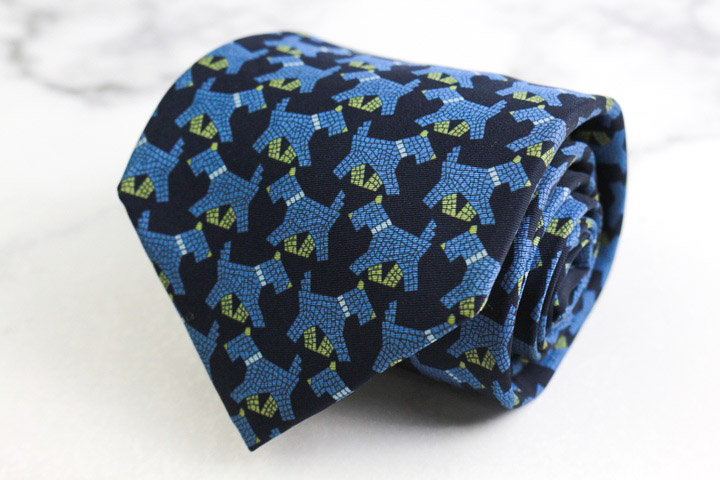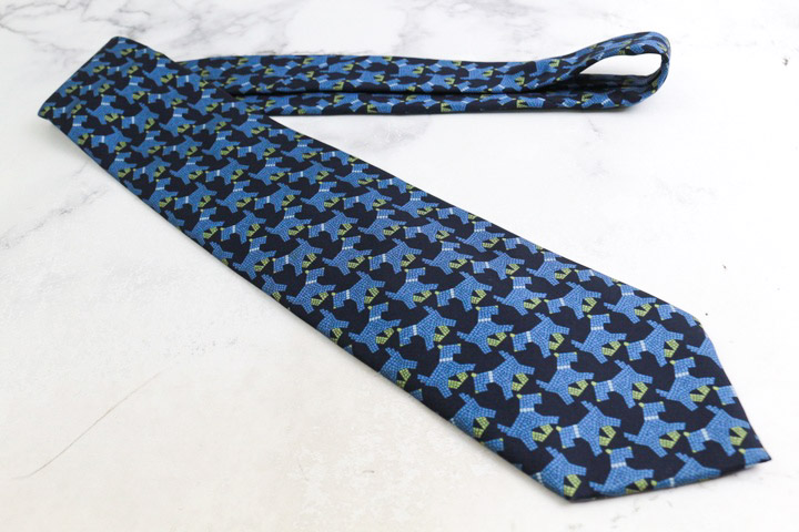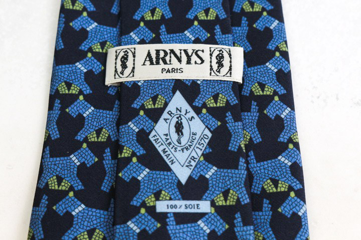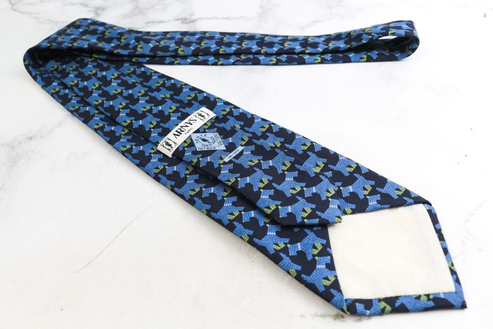 アルニス ブランド ネクタイ シルク 動物柄 総柄 犬 PO メンズ ネイビー ARNYS 【中古】