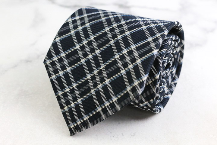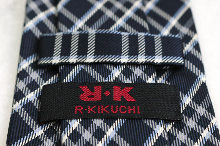 リョウコキクチ ブランド ネクタイ シルク チェック柄 格子柄 PO メンズ ネイビー R.KIKUCHI 【中古】