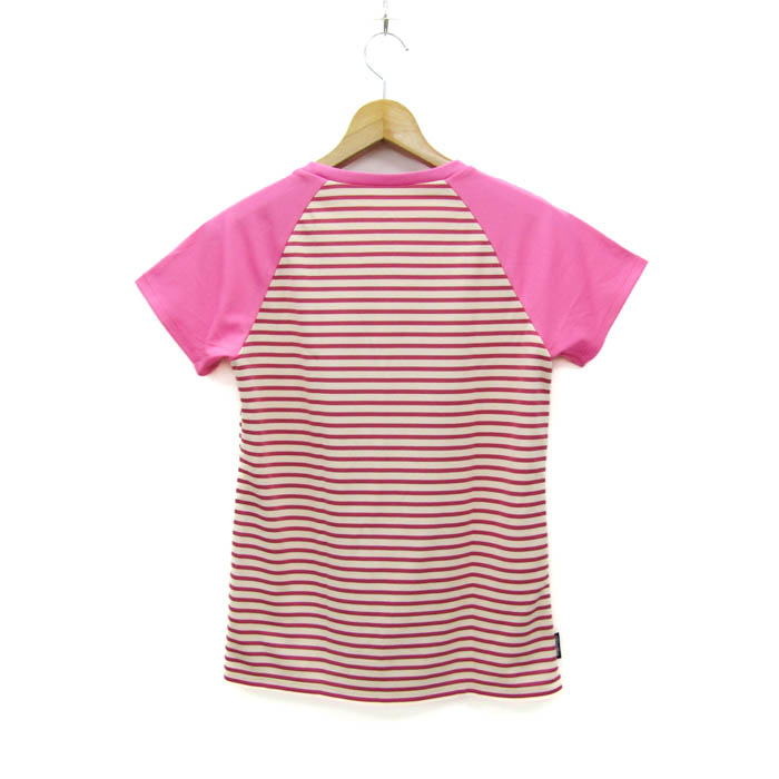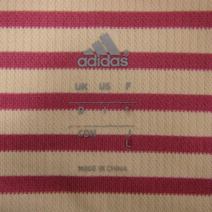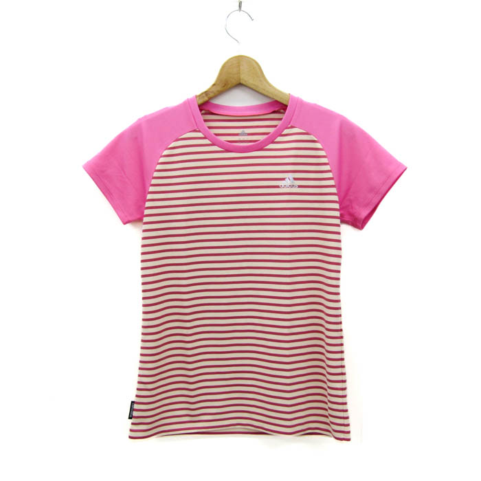 アディダス 半袖Tシャツ トップス ボーダー柄 スポーツウエア レディース Lサイズ ベージュ×ピンク adi...