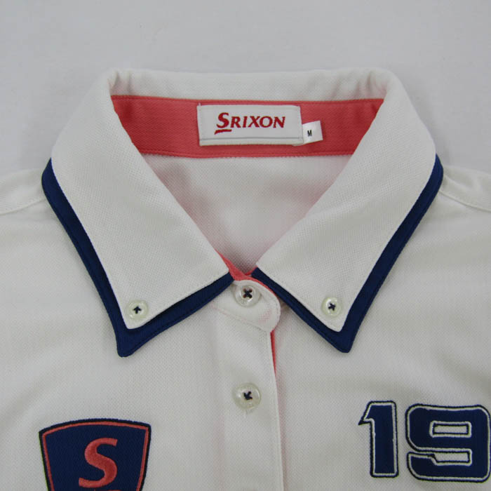 スリクソン ポロシャツ トップス 半袖 ゴルフウエア レディース Mサイズ 白×紺×ピンク SRIXON 【中古】
