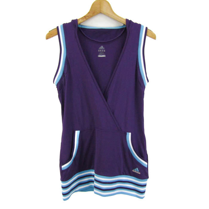 アディダス タンクトップ ノースリーブ シャツ トップス クライマ365 スポーツウエア レディース Lサイズ 紫×白×青 adidas 【中古】