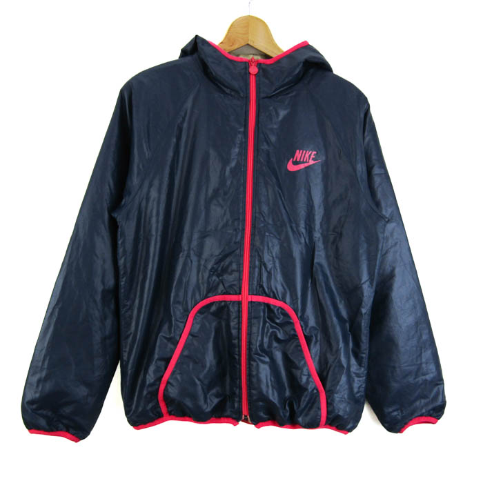 ナイキ 中綿ジャケット ジャンパー パーカー アウター スポーツウエア レディース Lサイズ 紺×ピンク NIKE 【中古】