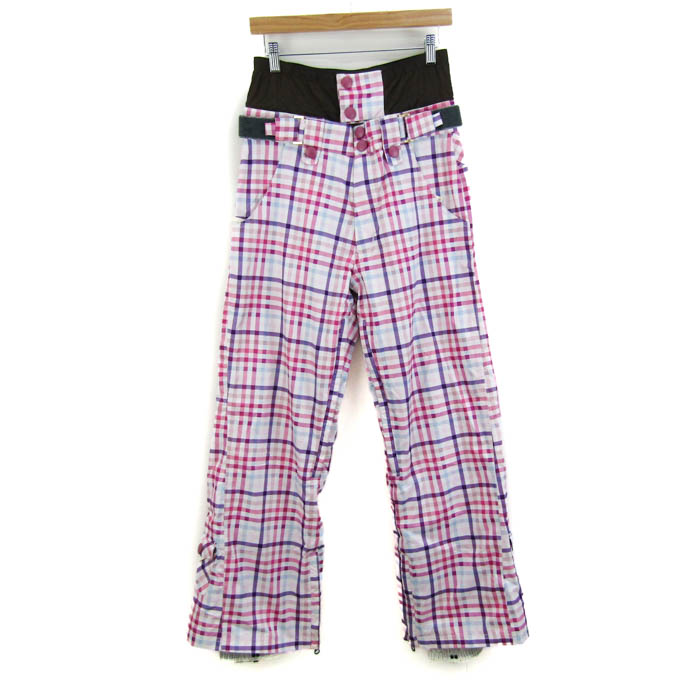 シスタージェイ パンツ ボトムス チェック柄 スノーボードウエア レディース Mサイズ 白×ピンク×紫 SIST...