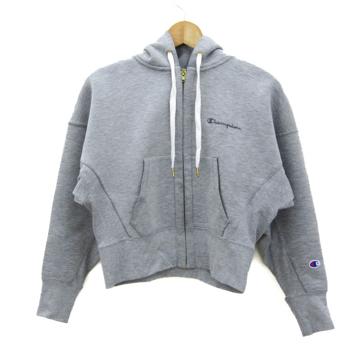 チャンピオン パーカー トップス ジップアップ スウェット ドルマンスリーブ スポーツウエア レディース Mサイズ グレー Champion 【中古】