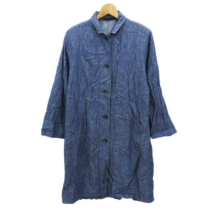 ユニクロ リネンブレンドコート ロングコート アウター レディース Sサイズ ブルー UNIQLO 【中古】