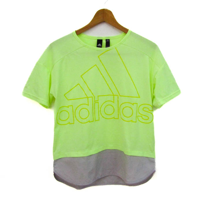 アディダス 半袖Tシャツ トップス ロゴT ラウンドヘム スポーツウエア レディース Mサイズ 黄×グレー adidas 【中古】