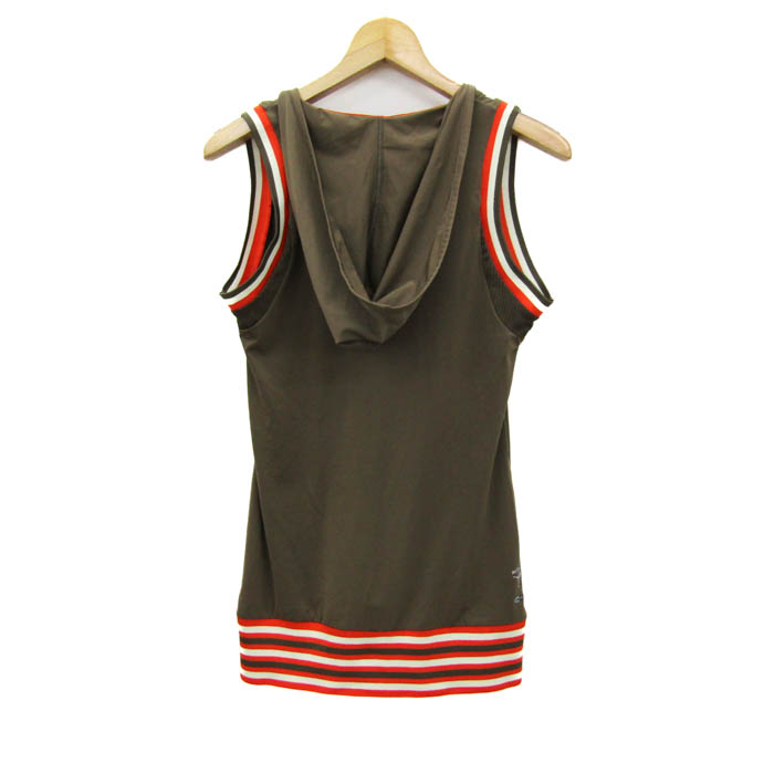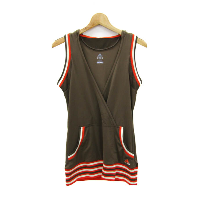 アディダス タンクトップ ノースリーブ シャツ トップス パーカー クライマ365 レディース Mサイズ 茶×白×オレンジ adidas 【中古】