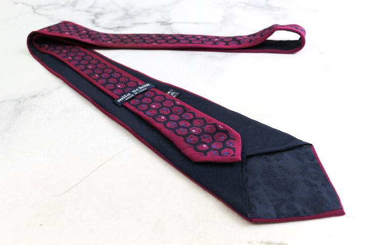 ミラショーン ブランド ネクタイ シルク Mマーク 小紋柄 総柄 PO メンズ ネイビー mila schon 【中古】
