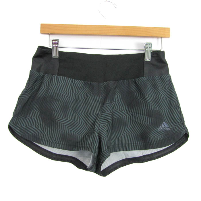 アディダス ショートパンツ スポーツウエア ボトムス 黒 レディース J/Lサイズ ブラック×グリーン adidas 【中古】