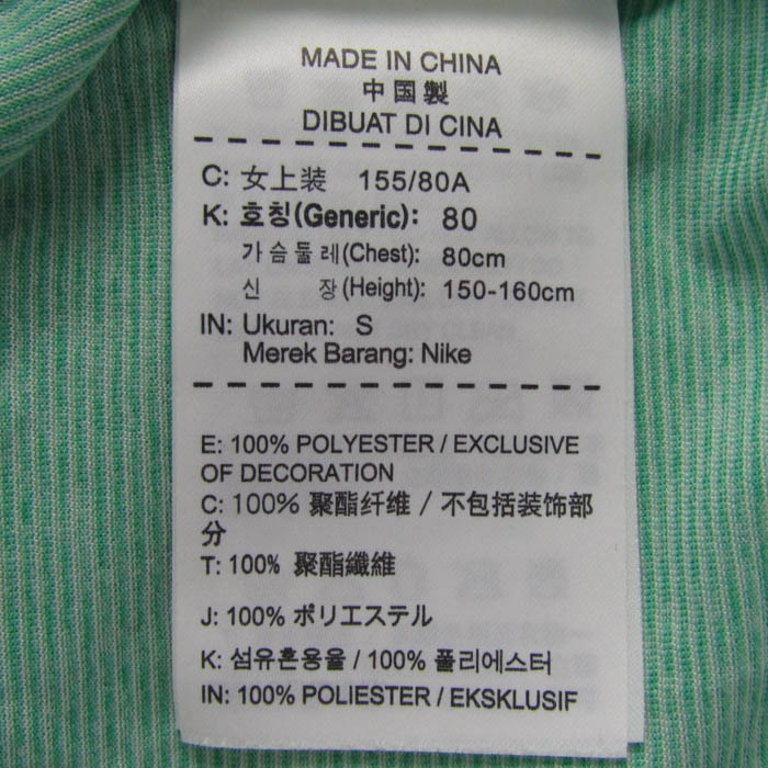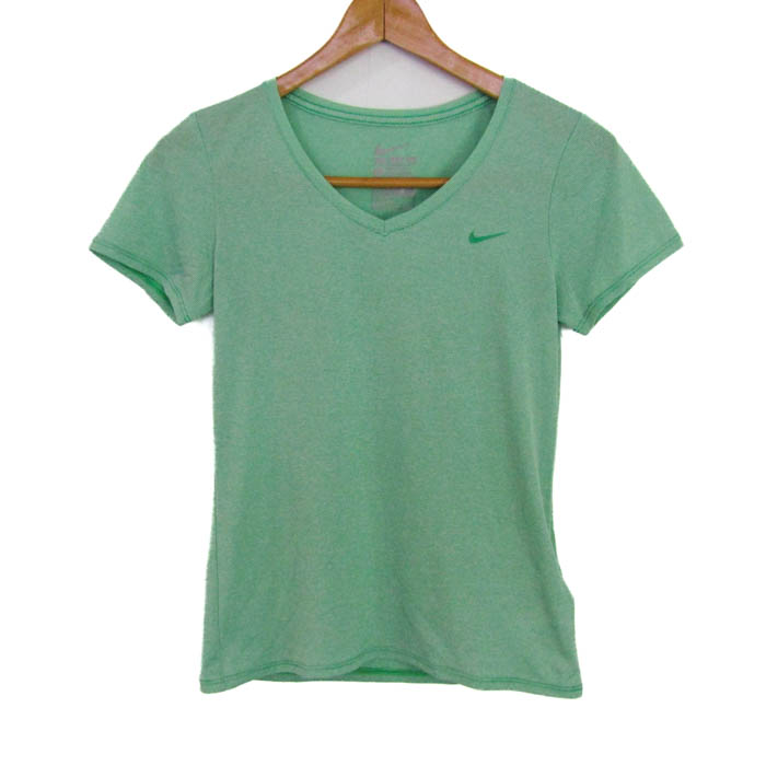ナイキ 半袖Tシャツ ドライフィット ワンポイントロゴ スポーツウエア トップス レディース Sサイズ グリーン×ホワイト NIKE 【中古】