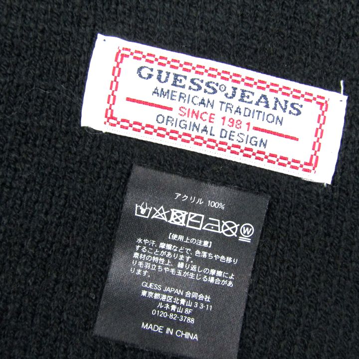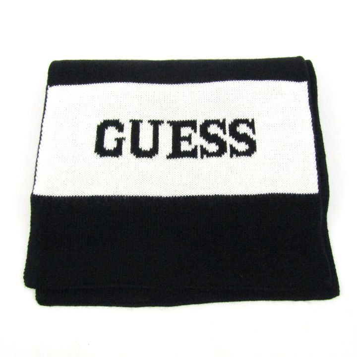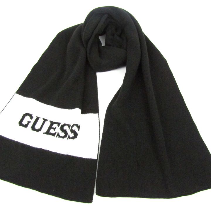 ゲス マフラー ロゴ ボーダー ブランド 小物 メンズ ブラック Guess 【中古】