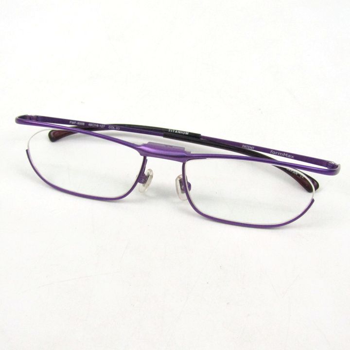フォルムマックス メガネ チタン フレーム FMF-8008 眼鏡 鯖江 ブランド メンズ 48□16-127サイズ パープル formMax 【中古】