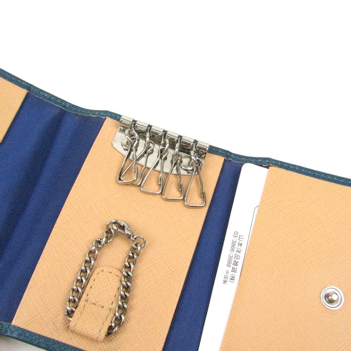 プレイボーイ キーケース 牛革 レザー 5連 ブランド メンズ ブルー PLAYBOY 【中古】