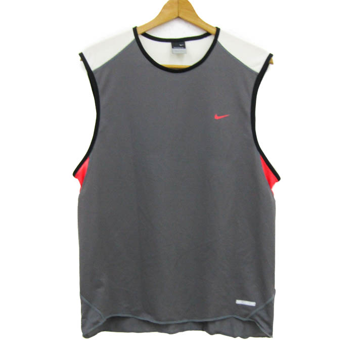 ナイキ タンクトップ ノースリーブシャツ トップス スフィアドライ スポーツウエア 大きいサイズ メンズ XLサイズ グレー×白 NIKE 【中古】