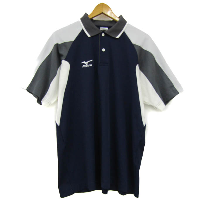 ミズノ ポロシャツ 半袖 スポーツウエア トップス メンズ Lサイズ ネイビー×ホワイト×グレー Mizuno 【中古】
