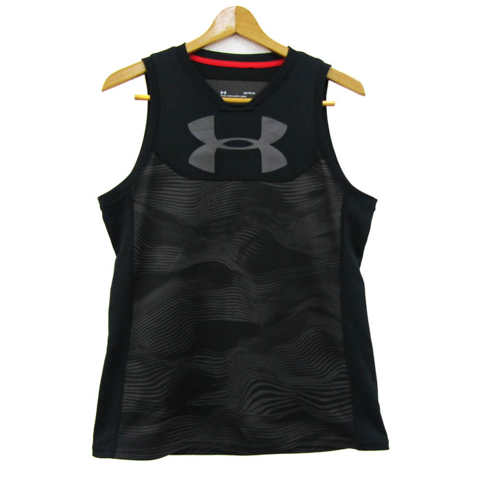 アンダーアーマー タンクトップ ヒートギア ノースリーブ スポーツウエア トップス メンズ LGサイズ ブラック UNDER ARMOUR 【中古】
