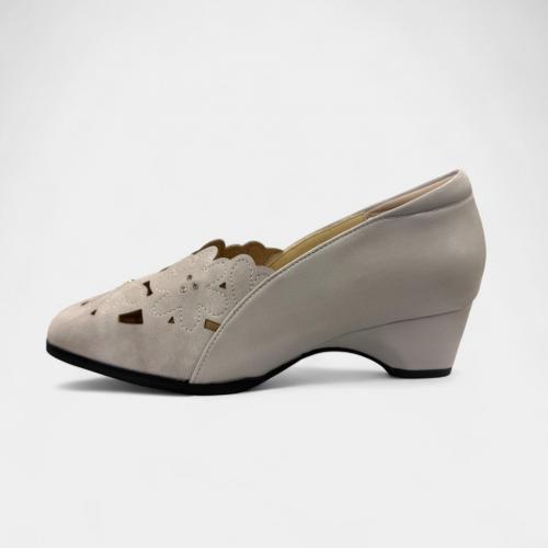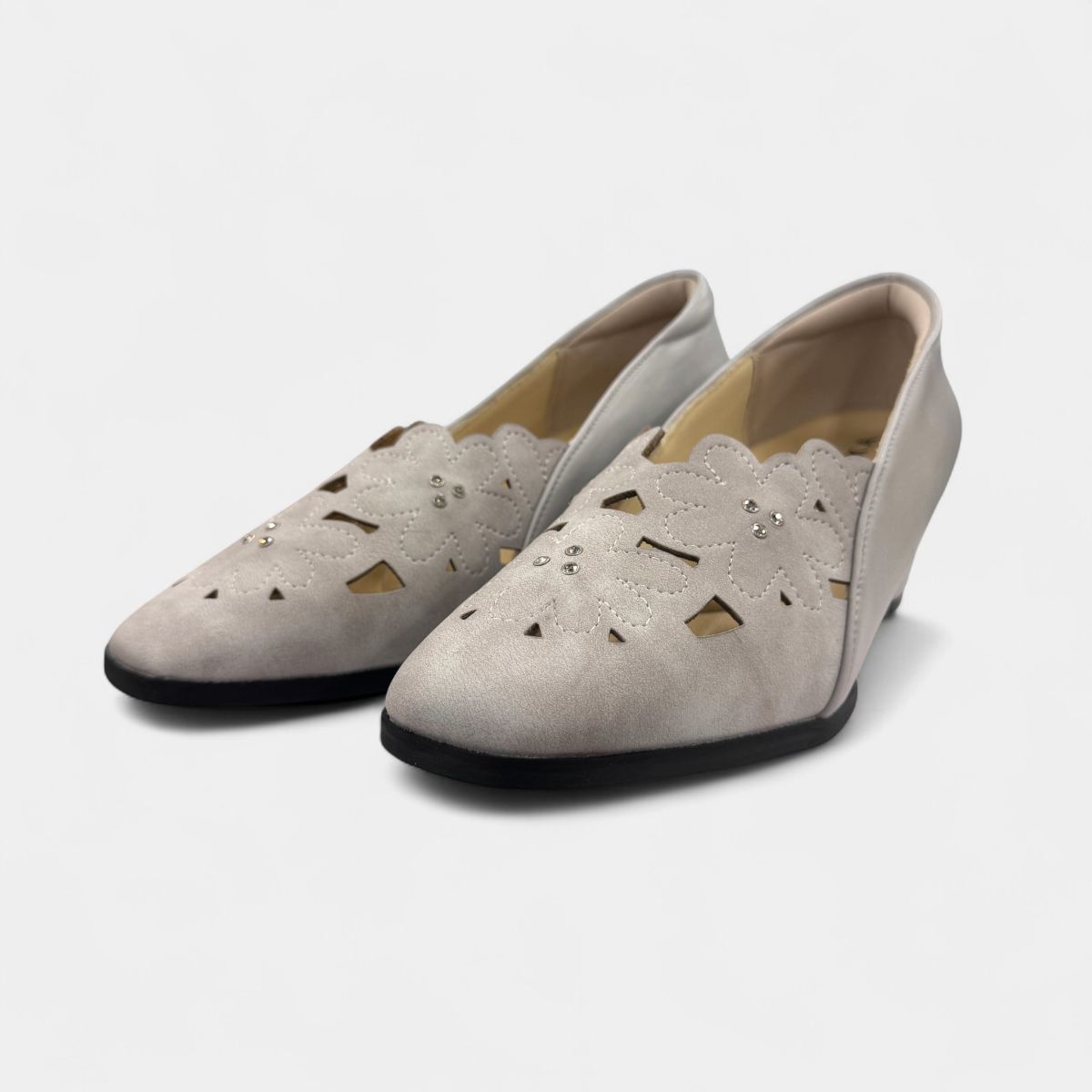 カラー:グレー 商品名:⦅サンプル商品⦆4Eフラワーカットビジューパンプス