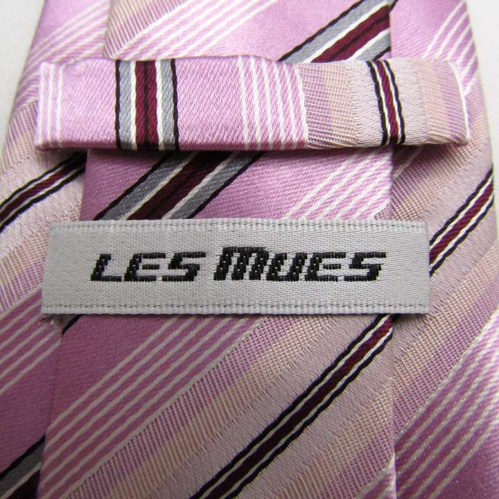 レミュー ブランド ネクタイ シルク ストライプ柄 PO メンズ ピンク LES MUES 【中古】