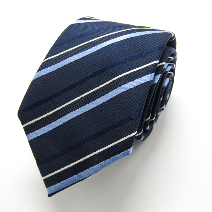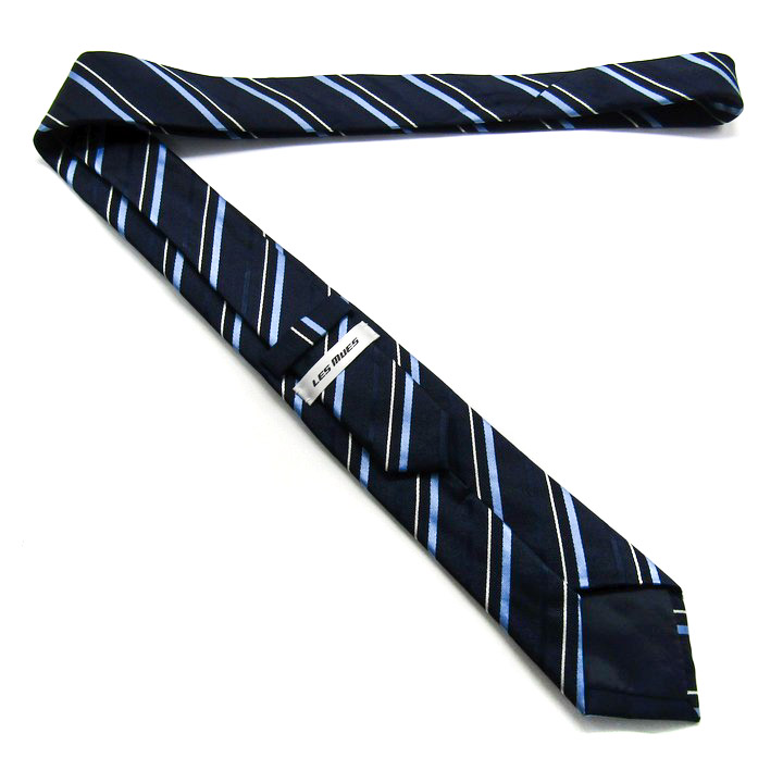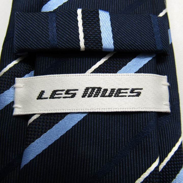 レミュー ブランド ネクタイ シルク ストライプ柄 PO メンズ ネイビー LES MUES 【中古】