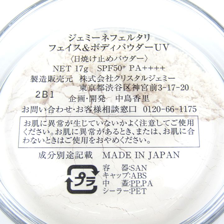 クリスタルジェミー ジェミーネフェルタリ フェイス&ボディパウダーUV 日焼け止めパウダー 17g 若干使用...