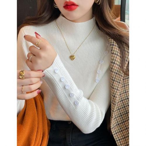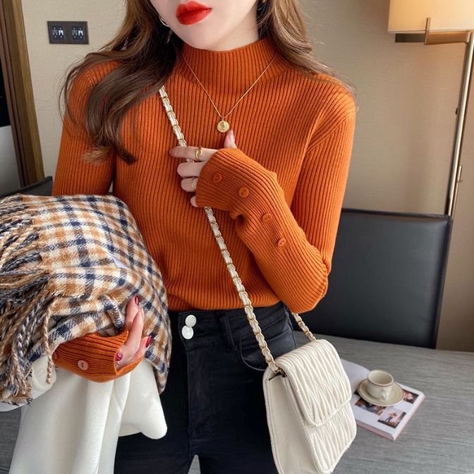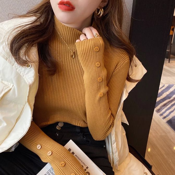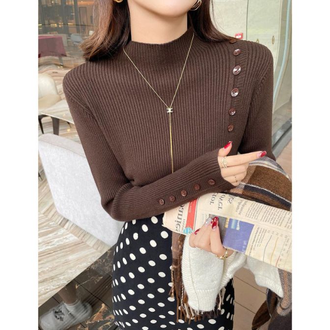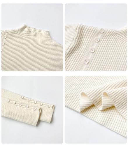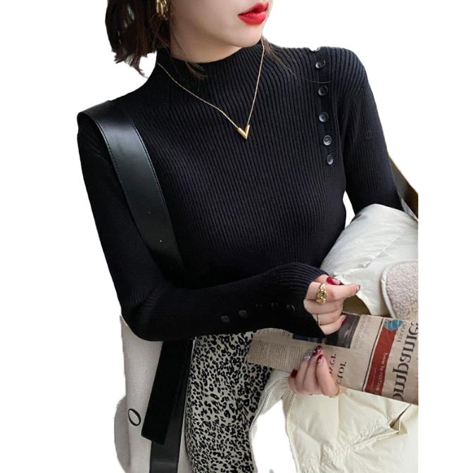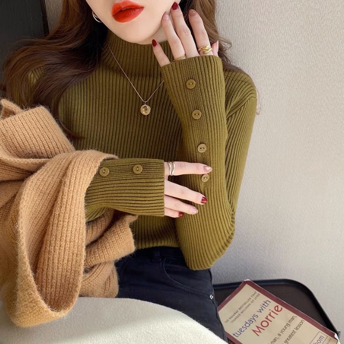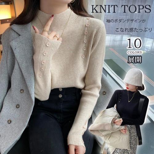 新作 秋冬レディース ニットトップス 長袖 ハイネック カットソー長袖 ボダン きれいめ