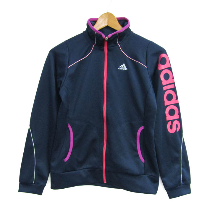 アディダス ジャージ トラックジャケット 長袖 スポーツウエア アウター レディース Sサイズ ネイビー×紫×ピンク adidas 【中古】