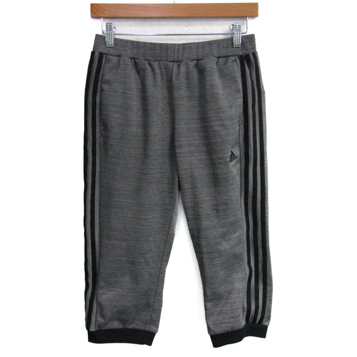 アディダス クロップドパンツ ジャージパンツ スポーツウエア ボトムス 黒 レディース Lサイズ ブラック×グレー adidas 【中古】