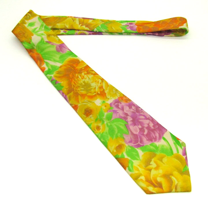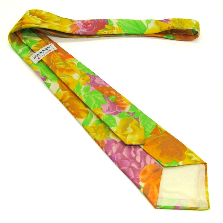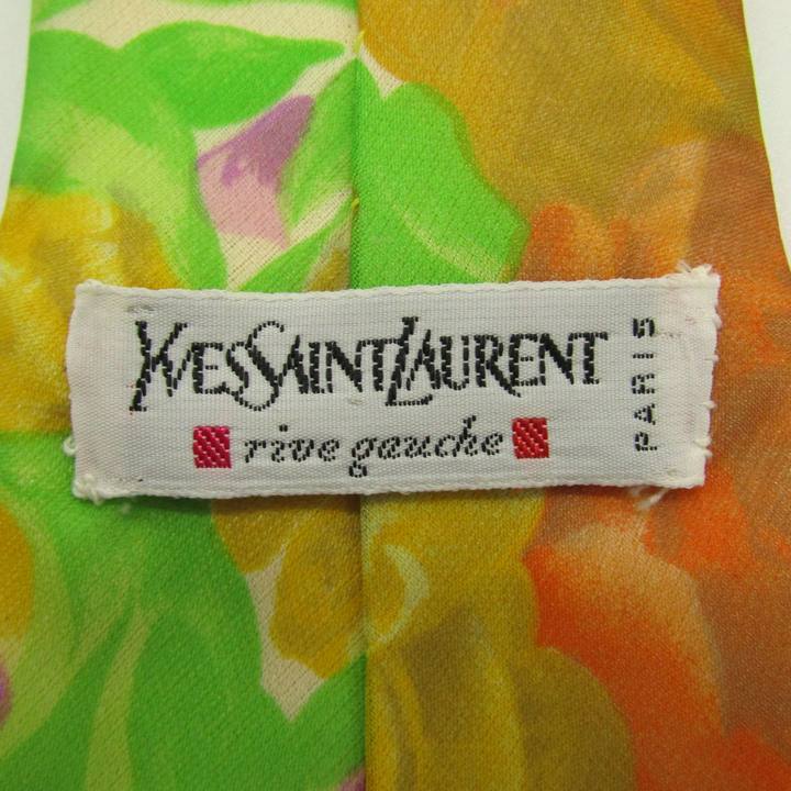 イヴ・サンローラン ブランド ネクタイ YSL 総柄 花柄 リーフ柄 PO メンズ オレンジ YVES SAINT LAURENT 【中古】