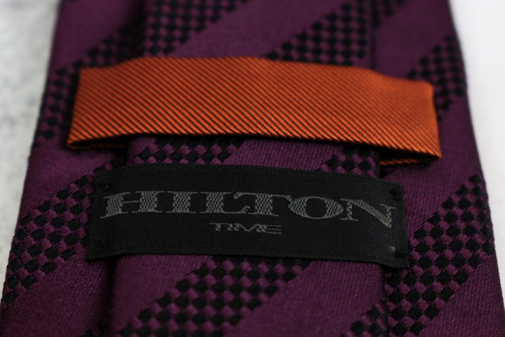 ヒルトン ブランド ネクタイ シルク ストライプ柄 チェック柄 PO メンズ パープル HILTON 【中古】